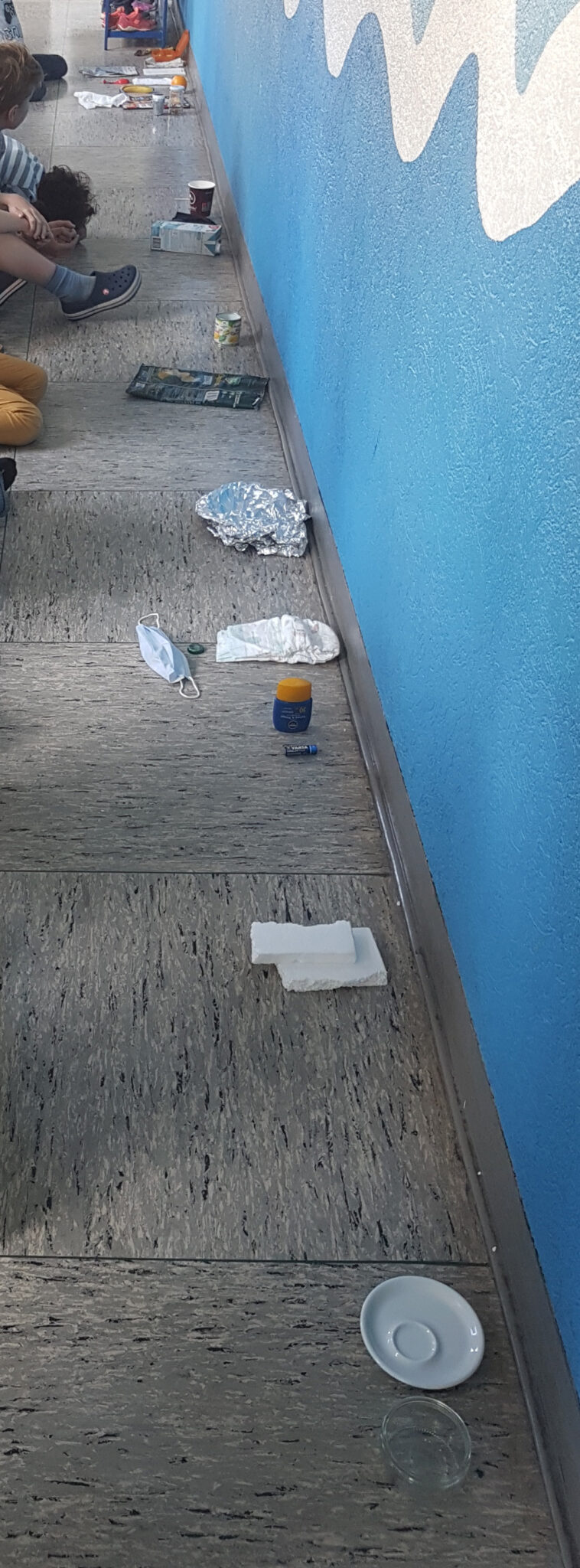 Nach der Pause haben wir noch ein zweites Buch kennengelernt. Es ging um Müll und wie lange er braucht, um von alleine zu zerfallen. Die Mutter hatte ganz viel unterschiedlichen Müll dabei und wir haben ihn dann sortiert. Am schnellsten zersetzen sich Brot und Blätter. Luftballons, Babywindeln und Batterien brauchen furchtbar lange. Darum ist es so wichtig, sie immer in den richtigen Müll zu werfen.